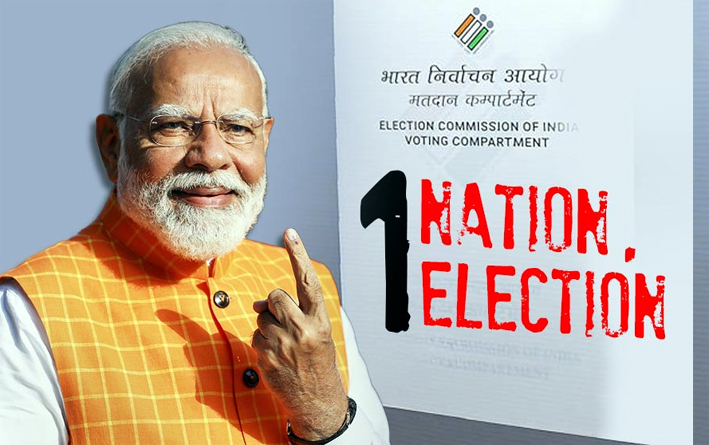 ‘এক দেশ, এক ভোট’ বা এক দেশ, এক নিৰ্বাচন (One nation, one election) প্ৰস্তাৱত অনুমোদন মোডী মন্ত্ৰীসভাৰ (Modi cabinet approves proposal)। বৃহস্পতিবাৰে এই প্ৰস্তাৱত অনুমোদন জনোৱা হয়। সূত্ৰ অনুসৰি, শীতকালীন অধিবেশন (Winter Session of Parliament)ৰ সময়ত কেন্দ্ৰই এই সন্দৰ্ভত সংসদত বিধেয়ক উত্থাপন কৰিব পাৰে (May introduce a bill in Parliament)। প্ৰাক্তন ৰাষ্ট্ৰপতি ৰামনাথ কোবিন্দৰ কমিটীয়ে ‘এক দেশ, এক ভোট’ৰ প্ৰতিবেদনত অনুমোদন জনায়। সূত্ৰসমূহে জনোৱা মতে, এই বিধেয়কখন যুটীয়া সংসদীয় সমিতি বা জেপিচিলৈও বিতং আলোচনাৰ বাবে প্ৰেৰণ কৰিব পাৰে।