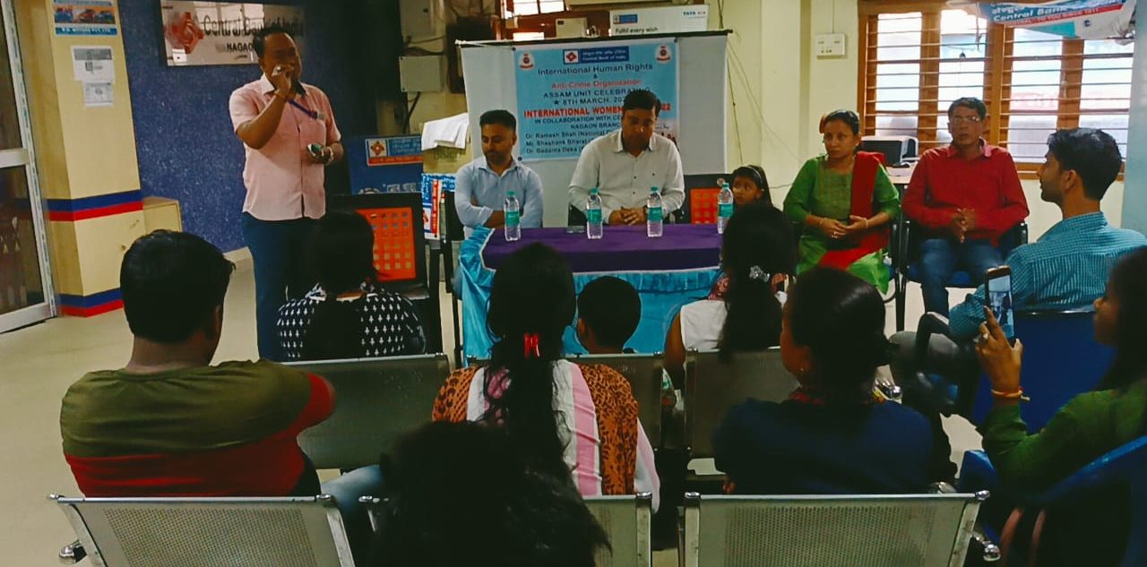 আজি আন্তৰ্জাতিক নাৰী দিৱসৰ লগত সংগতি ৰাখি ইণ্টাৰনেশ্যনেল হিউমেন ৰাইটছ এণ্ড এণ্টি ক্ৰাইম অৰ্গেনাইজেশ্যন আৰু নগাঁও চেন্ট্ৰেল বেংকৰ সহযোগিতাত এক সভা অনুষ্ঠিত কৰা হয়৷