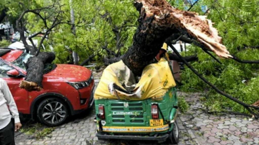 সোমবাৰে নিশা ১০০ কিলোমিটাৰ গতিবেগৰ ধুমুহাত বিপর্যস্ত হয় নতুন দিল্লীৰ একাধিক এলেকা। শতাধিক গছ ৰাস্তাত উভালি পৰে। ভাঙিছে একাধিক ঘৰো। ধুমুহাই প্রাণ কাঢ়িছে দুই দিল্লীবাসীৰো। সোমবাৰে সন্ধ্যাৰ লগে লগে হঠাৎ ঘূৰ্ণী বতাহ আৰম্ভ হয়। নতুন দিল্লী আৰু মধ্য দিল্লীত ৰাস্তাত উভালি পৰে ইডালৰ পিছত সিডাল গছ। গছ পৰি পার্কিং স্থানত থকা গাড়ী চেপেটা হৈ যায়। একাধিক ঘৰৰ টিনৰ ছাল উৰুৱাই নিয়ে।প্রশাসনৰ সূত্র মতে, সৰু-ডাঙৰ মিলাই প্রায় ৮০টা ক্ষয়-ক্ষতিৰ ঘটনা ঘটে।